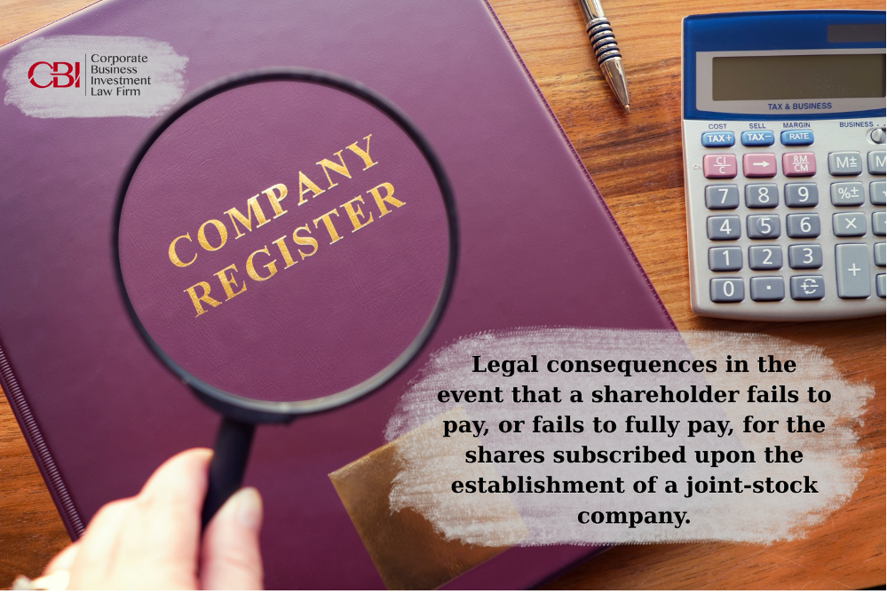 Legal consequences in the event that a shareholder fails to pay, or fails to fully pay, for the shares subscribed upon the establishment of a joint-stock company